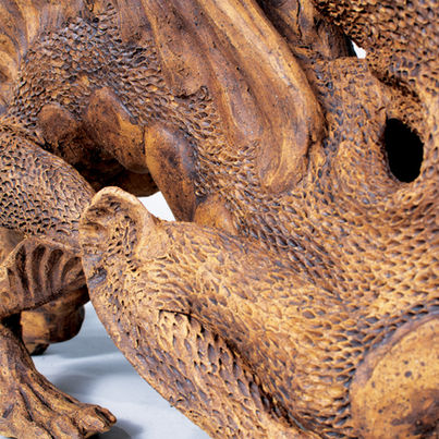 Sculpture inspired by Scandinavian water spirit. Midfire clay with dry pigments. Made in Guldagergaard Ceramic Research Center 2021.
